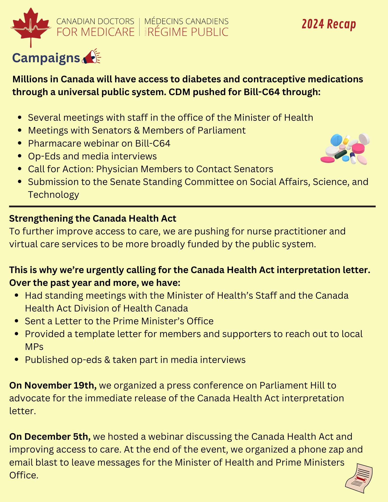 CDM in 2023: Federal open letter campaign, Pharmacare, pushing back against for-profit health care.